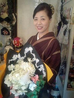 丸岡バレエさんの発表会にプレゼントされる花束をご注文しにきていただきました