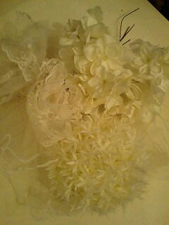 バラや芍薬、菊の花に寄り添うようにレースやパール、ファーなどをセットしています