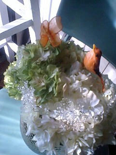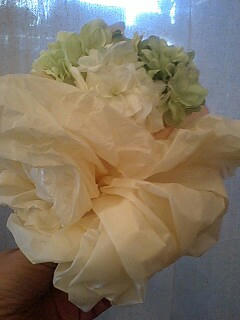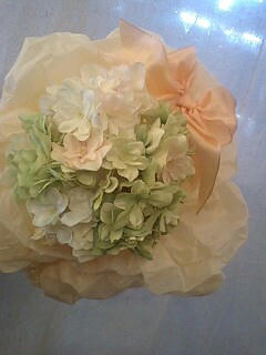 新作で入った白とグリーンのなんとも言えない 可愛いい花びらの紫陽花ブーケをオーダーいただきました