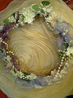 初めてご自分で 花を選び、花のバランスをみながら リボン、パール、レースなど 様々な材料を使い 仕上げていく事は本当に大変だったと思います