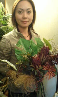 タビィ店の花からよ~く吟味して選び抜いたアジアンな花で アレンジを完成させたひろみさま~~ 二時間近く楽しみながら 格闘しながら 本当に素敵なアレンジが完成しました
