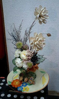 の古い花器にアレンジしてみました! 器の花