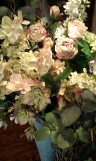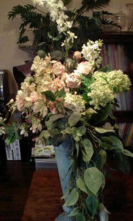 春を待ちわびながらグリーンと 淡いピンクでアレンジ