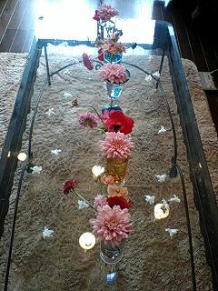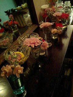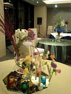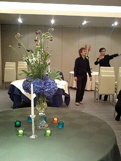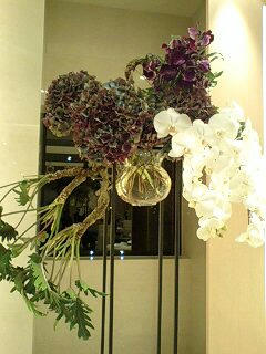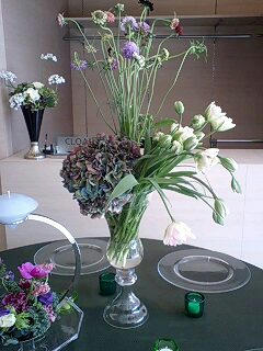 先日 フローリスト橋本さんのお手伝いで オープン前の花の活けこみにいって参りました 夜の10時から一万本以上の花を一斉にだし 活けていく様は壮絶でしたね 私もテーブルに2つも活けさせていただき 大興奮でしたよ