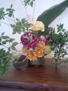 先日、 ご好評につき、タビィの自宅にて 橋本卓士生け花レッスンを 皆様と共に勉強いたしました。今回のテーマは 調和 でした。 花、花器 、 色、 花を飾るシチュエーション、 色々な視点から 調和というテーマで生けていただきました。 最近では生け花を習う方も少なくなり 今日は皆さんも 興味深く真剣に デモンストレーションを見てくださいました。 器に陶器を使ったり、 昔の小さい鉄瓶に生けたり 橋本さんの生け花の世界にみんな入り込んでしまうくらい 素敵な時間でした。 最後に 枝を作った珍しいブーケのお土産を手に皆さん 大満足! と嬉しいお言葉もいただき 本日設定させていただいたわたくしも嬉しく思いました。 わたくしも11月12月と黒崎のバーマルケスさん、下関のアルベリさんでのディスプレイに向け、日々楽しみ、苦しみながら、格闘しております! みなさまドライフラワーや異素材を使った花の造形作品をお楽しみに!!