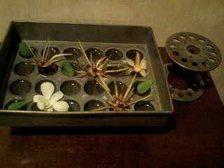 昭和四十年代のアイスクリームを作る容器です。 小さい花を浮かべると可愛いらしいですね。
