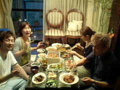先日 自宅で食事会をしました。花やのゆみちゃん ご夫婦にまたまたフローリストの橋本さんカップル~に ショーでお世話になった方々七人が来てくださいました。 私も何年ぶりかに食事会を開き かなり緊張しました。 今回は和食を十品作りました!が、 一番好評だったのは陶芸家の小林さんのコロッケでした~!料理もまだまだ勉強不足~ またまた勉強して美味しいもの作るぞー!