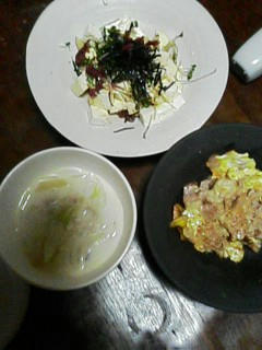 腹が減っては~ 作るのが主婦の仕事~ 今日は 豆腐サラダに梅雨の時期 お腹をこわさないように梅干しをいれまして、酸っぱいけど 美味しかったな~ 豚肉のピカタにシチュー 沢山食べて明日も頑張るぞー! あっ そうそう この器は 私の良き友!小林さんという 頭脳明晰の陶芸家が作った器を使っていますのよ。 彼女の魂~がはいり、 私の即席料理を、料亭並の食事に見せてくれるのです。なにぶん忙しい小林ですが 是非作って欲しい~ というかたはタビイの掲示板にお知らせくださいな ではでは 台風が近づいていますから みな様、 停電、断水の事なども考え、懐中電灯 (我が家はないので、とりあえずは亀山ろうそくですが…)、ため水 をお忘れなく! 備えあればうれいなし~ |