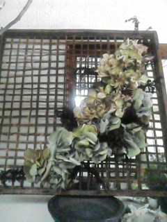 ドライフラワーが大好きなはたさんにオーダーを受け 昭和初期に使われていた木枠 を額縁に見立て紫陽花のワイヤーアレンジを飾りました。 はたさんに頼まれ面白いものができて私も嬉しいです~!有難うございます。